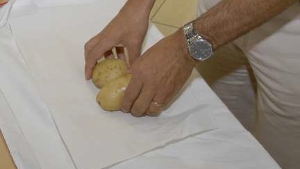 So wird der Wickelzusatz vorbereitet und in Wickeltücher eingeschlagen, hier gezeigt am Beispiel eines Kartoffelwickels: