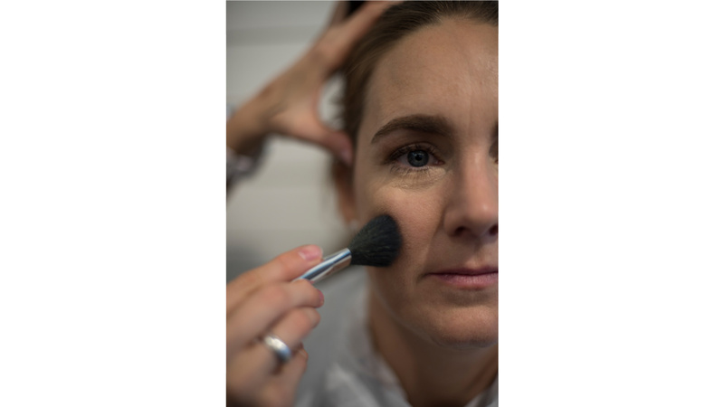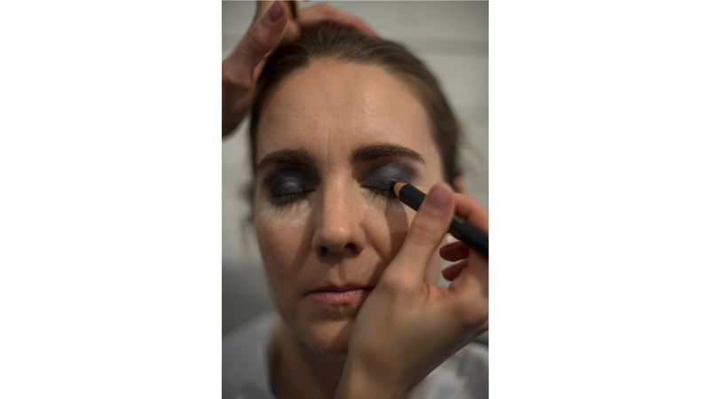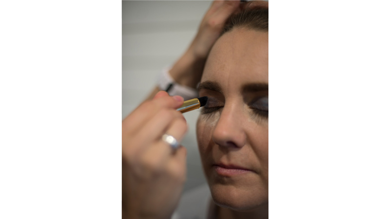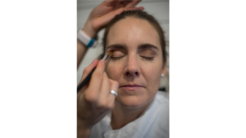 Suit la vaporisation d’un spray rafraîchissant ou fixateur. Celui-ci assure que le maquillage ne file pas quand les danses s’enchaînent ou que la salle est surchauffée.