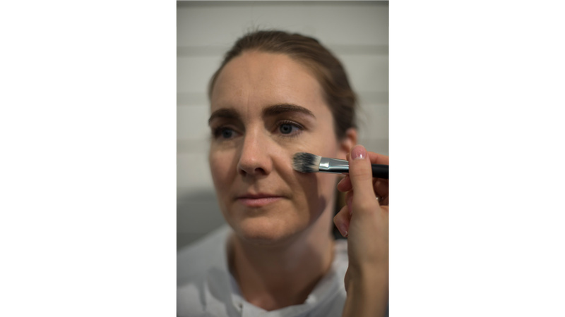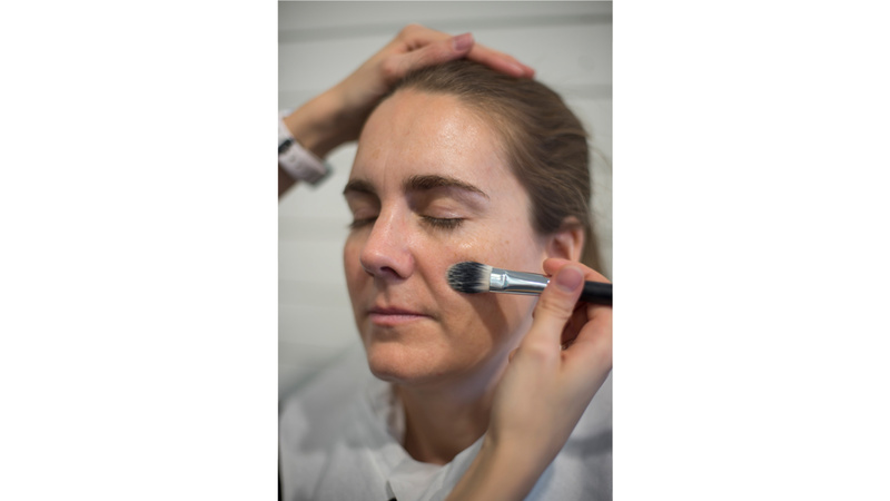 Neutraliser ensuite les rougeurs et les ombres avant d’appliquer un fond de teint plus ou moins recouvrant. Travailler ensuite avec le pinceau de haut en bas et du centre vers l’extérieur.